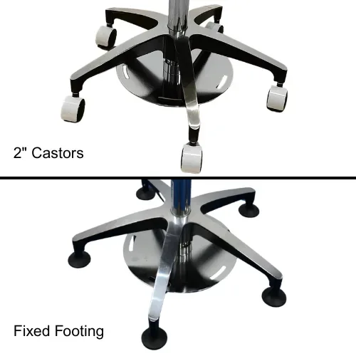 Base platform options of fixed footing for maximum steadiness or 2″ (50 mm) castor wheels for smooth mobility.