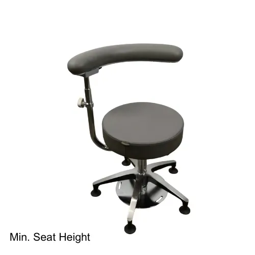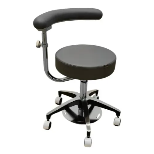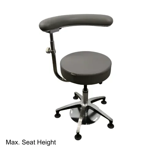 The SS-4110 Surgeon Stool combines comfort, functionality, and adaptability for surgical environments. Featuring a free-spinning round cushioned seat and a 360° foot-operated height adjustment pedal for hands-free convenience, it ensures effortless positioning during procedures. Additionally, its height-adjustable curved backrest provides ergonomic support and comfort for extended use, making it an ideal choice for precision and performance in the operating room.