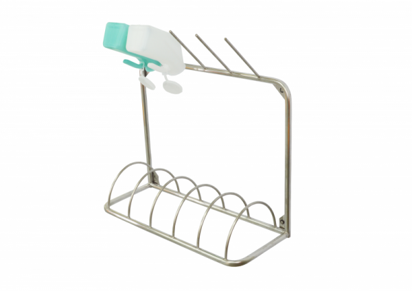 The wall mounted stainless steel holder is capable of holding 5 bedpans and 5 urinal bottles. It can be secured to the wall with 4 mounting screws.